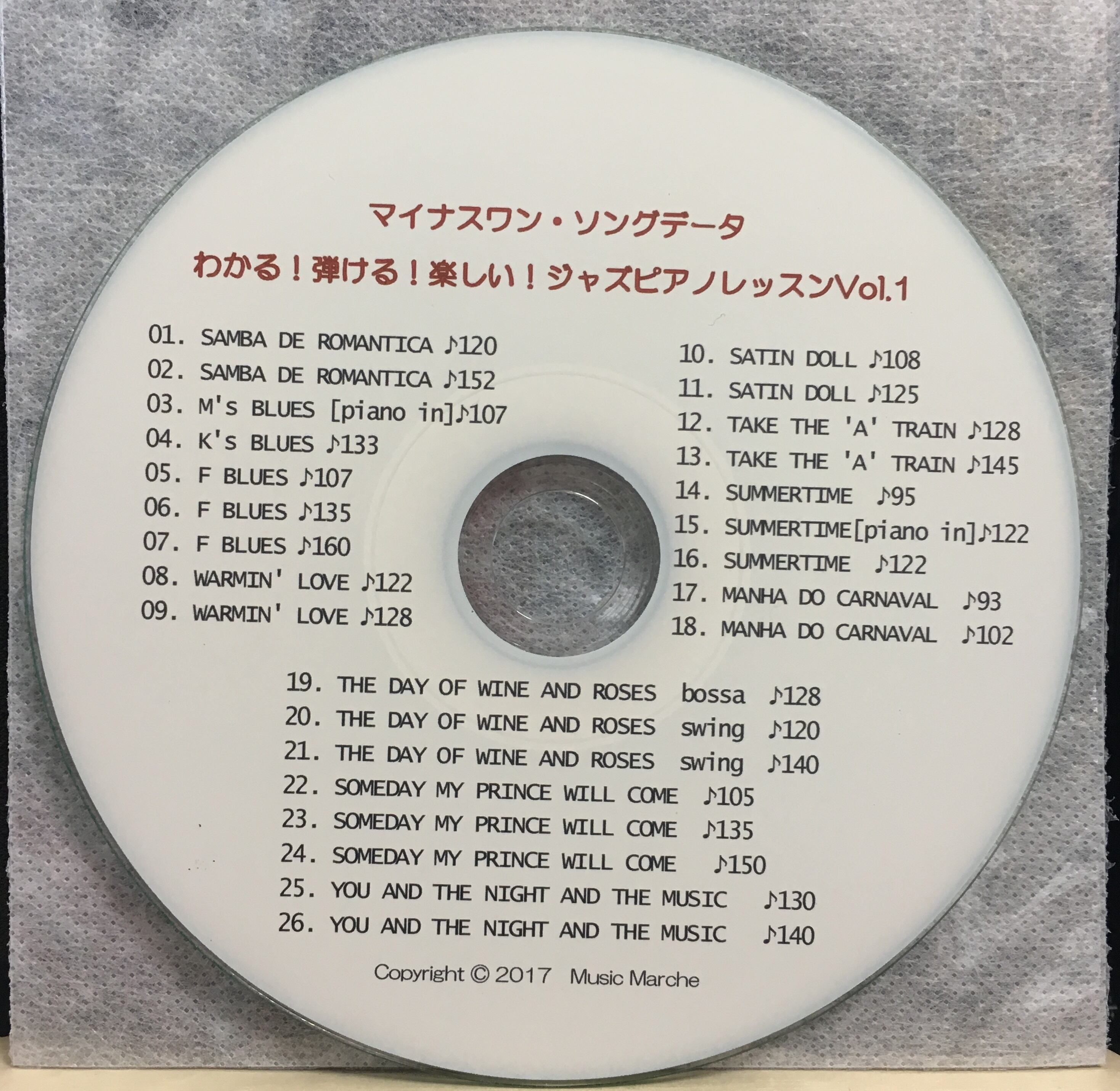 このうちSong07、17~24はアドリブ譜面あり、付属のCD、You tube音源で練習できます。